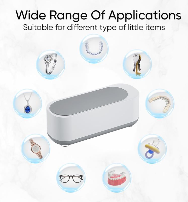 This product is suitable for cleaning glasses, jewelry, teeth aligners, makeup brushes and any other waterproof appliance.